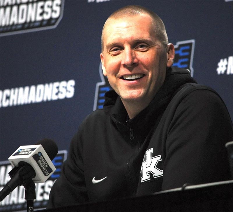 Kentucky coach Mark Pope answers a question during a press conference during the NCAA Tournament in Milwaukee last March. (Photo by Keith Taylor, Kentucky Today)