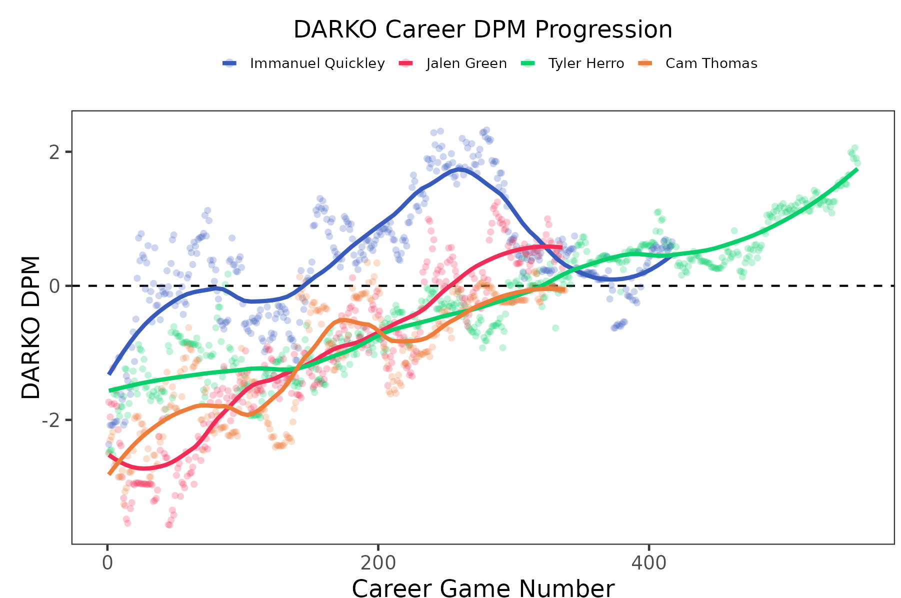 It’s easy to understand these reference points for Thomas, the second-youngest player of the four behind Green. A quick snapshot of their career DPM, a nerd-favorite all-in-one metric whose methodology can be explained here, suggests these four players are in the same ballpark. The market is not…