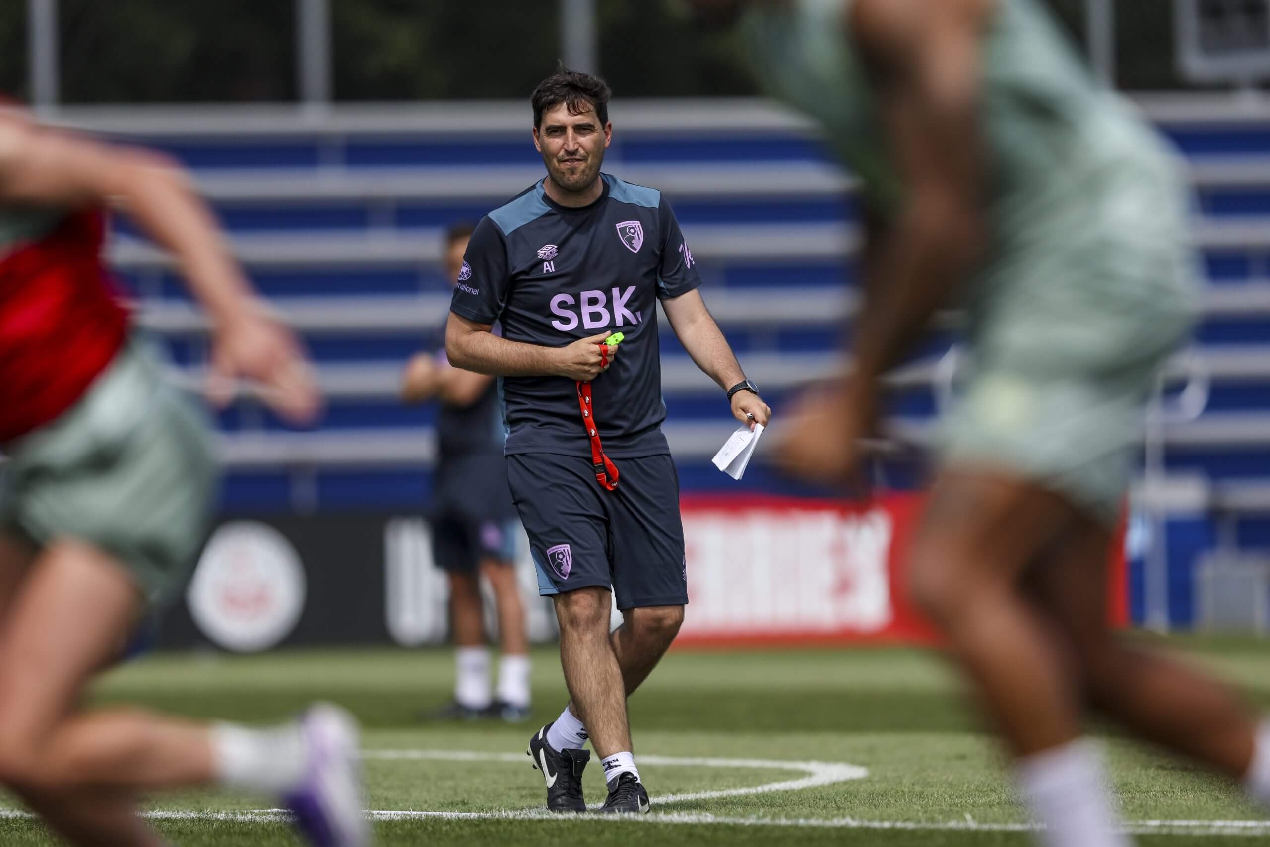 Iraola oversees a Bournemouth training session at Flames Field, University of Chicago, last month (Getty Images)