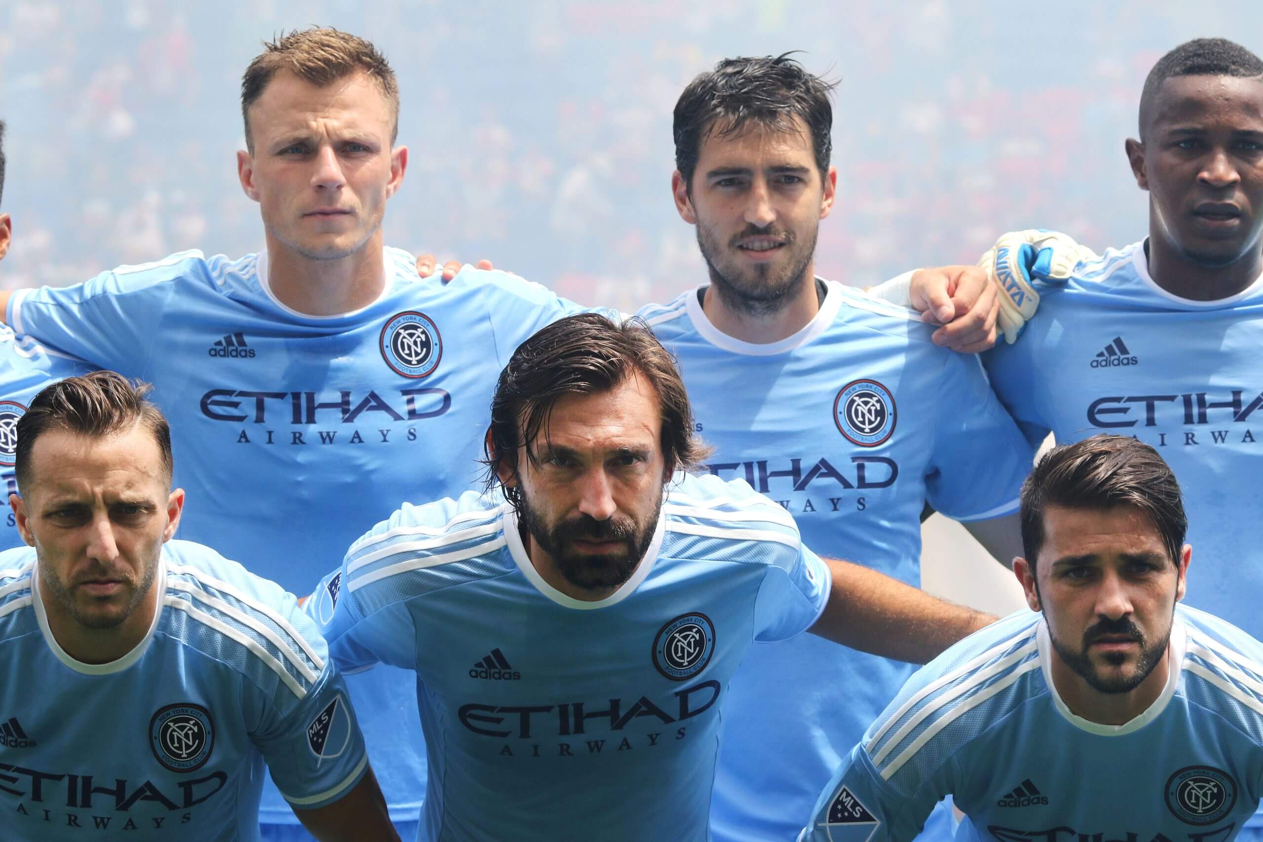 Iraola, above Andrea Pirlo and David Villa, at New York City FC in 2016 (Tim Clayton/Corbis via Getty Images)