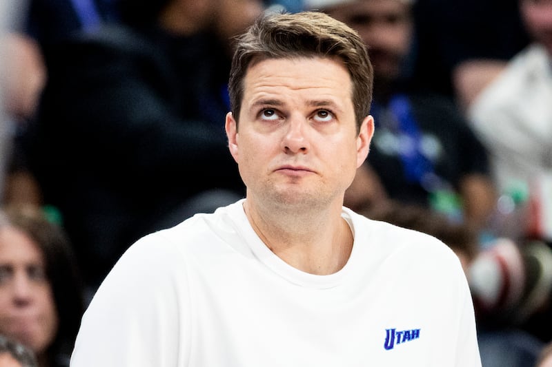Utah Jazz head coach Will Hardy looks up at the jumbotron late in the fourth quarter as the Jazz trail the Memphis Grizzlies during an NBA basketball game held at the Delta Center in Salt Lake City on Tuesday, March 25, 2025. | Isaac Hale, Deseret News