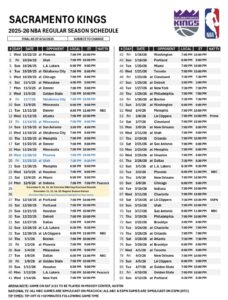 Here’s a look at the full Sacramento Kings schedule for the 2025-26 season: