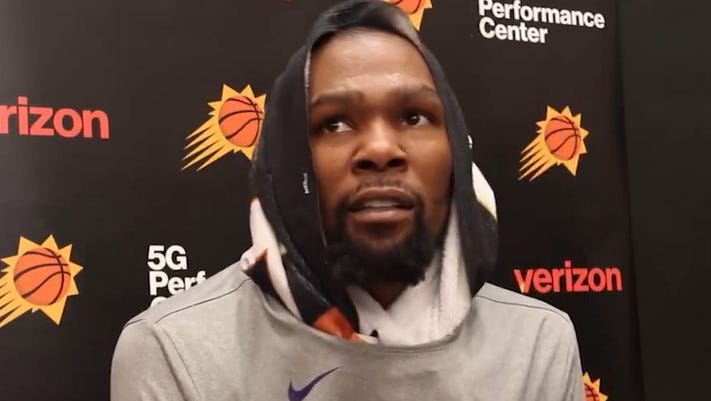 When Durant was eventually traded, Kay Adams asked Durant at a Fanatics event June 22 in New York about “a lot of heartbroken Suns fans” over the trade.