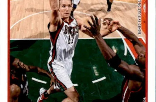 The next three are all players who just missed out on playing with Giannis and were part of those early 2010s squads before he was drafted there. Andrew Bogut was the No. 1 overall pick back in the 2005 draft and was supposed to be the superstar the Bucks were looking for, but he never even made an All-Star game in his 14-year career. Bogut departed Milwaukee heading into the 2012 season, where he would win a title with the Golden State Warriors (the card here is from the season before that). Next up, we have Giannis’ favorite player ever, Mike Dunleavy. Dunleavy spent two years in Milwaukee as part of his Central Division Tour, playing with the Indiana Pacers before that and the Chicago Bulls and Cleveland Cavaliers after that time. The last one here is Carlos Delfino. The Argentine forward had a relatively short NBA career, playing eight seasons before injuries derailed his second stint with the Bucks when he signed with them in 2013. Despite that, his best ball came with the Bucks from 2009-2012 where he averaged 10.6 PPG, 4.5 RPG, 2.5 APG, and 1.3 SPG, shooting 40.1% from the field and 36.6% from three-point range.