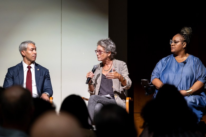 Christine Drennon, associate professor of sociology and anthropology at Trinity University, speaks during a panel discussion at Whitley Event Center. Credit: Bria Woods / San Antonio Report