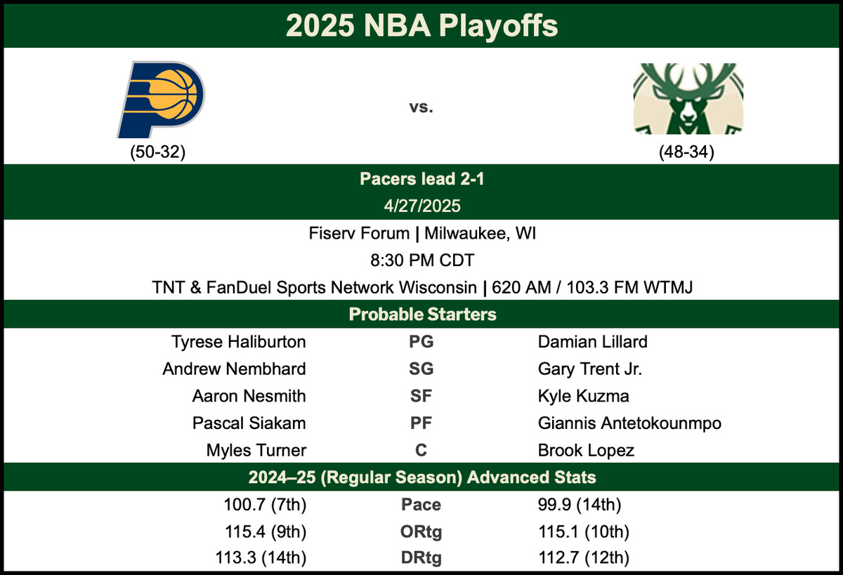 The Milwaukee Bucks were able to stave off disaster in their first-round series against the Indiana Pacers; even better, they turned in a strong Game 3 second half performance to reel the series back to 2-1 while generating a bit of positive momentum. But basketball is a fickle sport. Any drop in intensity could spell major trouble. Can Milwaukee keep the fire alive at home again in Game 4?