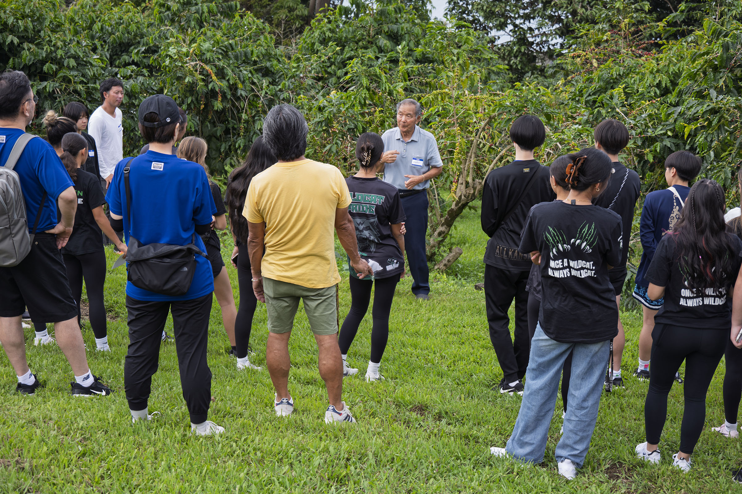 On Hawaiʻi Island, the Fukuoka team and the Konawaena High School girls basketball team visited Country Samurai Coffee Farm and learned about experiences of the first Japanese immigrants from owner Walter Kunitake.