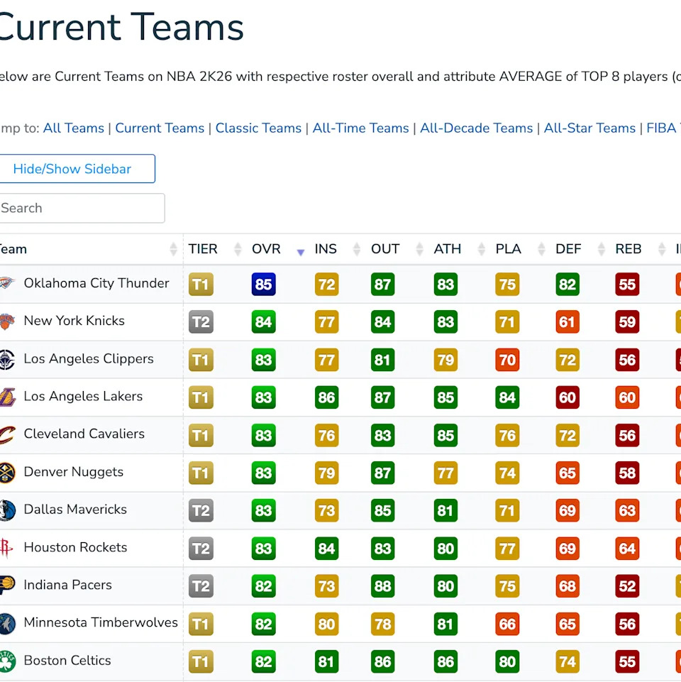 In terms of team rankings, the Knicks grade out as an 84 overall. According to the game, they’re a mediocre defensive and rebounding team, a great scoring team, and an okay playmaking team. They are tied for the second-best overall, behind the Thunder. Despite a 59 team rebounding, that’s still top-ten. Their weakest attributes as a team are playmaking and defense, both bottom ten.