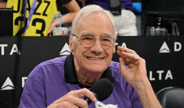 Longtime announcer Dan Roberts smiles after the Utah Jazz and the Portland Trail Blazers played at the Delta Center in Salt Lake City on Wednesday, April 9, 2025. Jazz won 133-126 in OT. | Scott G Winterton, Deseret News