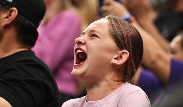A young Utah Jazz fan cheers as the Jazz and the Portland Trail Blazers play at the Delta Center in Salt Lake City on Wednesday, April 9, 2025. Jazz won 133-126 in OT. | Scott G Winterton, Deseret News