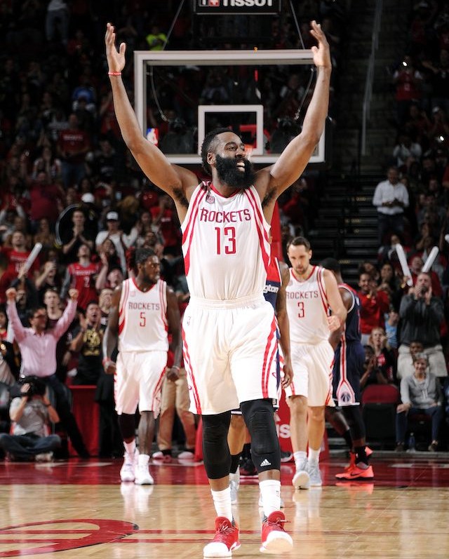 Say what you will about the way James Harden left the Rockets (I was very tempted to use a picture from that moment in time), but prime James Harden is to date the second greatest Houston Rocket of all-time. Let’s face it, he could have won MVP in 2015, 2017, 2018, and 2019. He won only in 2018, but arguably should have won at least two more of them, which would have made him the only three-time MVP in Rockets history. (Malone won one of his with the 76ers)