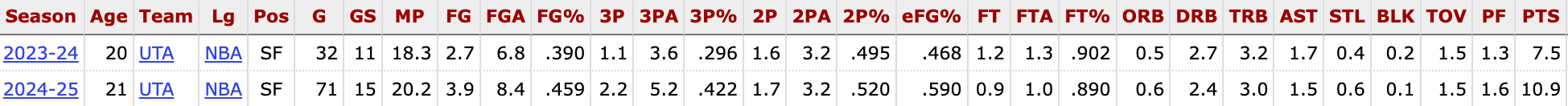 So it blows my mind how egregiously the discourse has whiffed on Brice Sensabaugh. Why will no one talk about how well Brice Sensabaugh performed through 2024-25? The third and final first-round selection of Utah’s first rebuilding draft, Ice Brice was claimed in the late first round along with Taylor Hendricks and Keyonte George. He’s entering his third season with the team. He’s got plenty to prove about his efficacy as a long-term contributor on this Utah Jazz team.