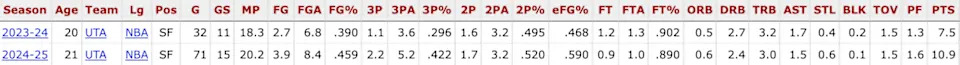 How quickly we’ve forgotten his back-to-back 25-point nights on a Sunshine State road trip, complete with a 34-point explosion in Miami. Is he the flashiest name on Utah’s roster? No. Does he bring much to the table beyond scoring? Again, the answer is mostly negative.