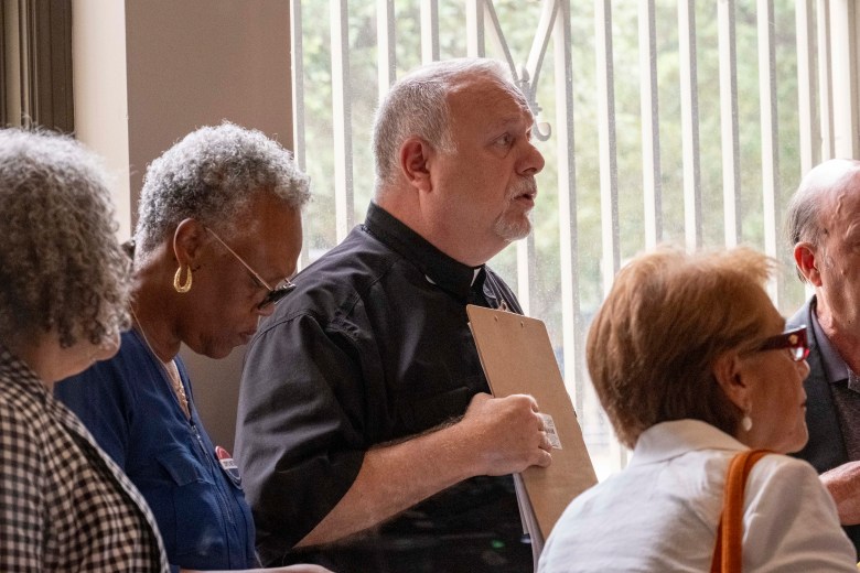 COPS/Metro Alliance leader Father Jimmy Drennan speaks at City Hall. Credit: Amber Esparza for the San Antonio Report