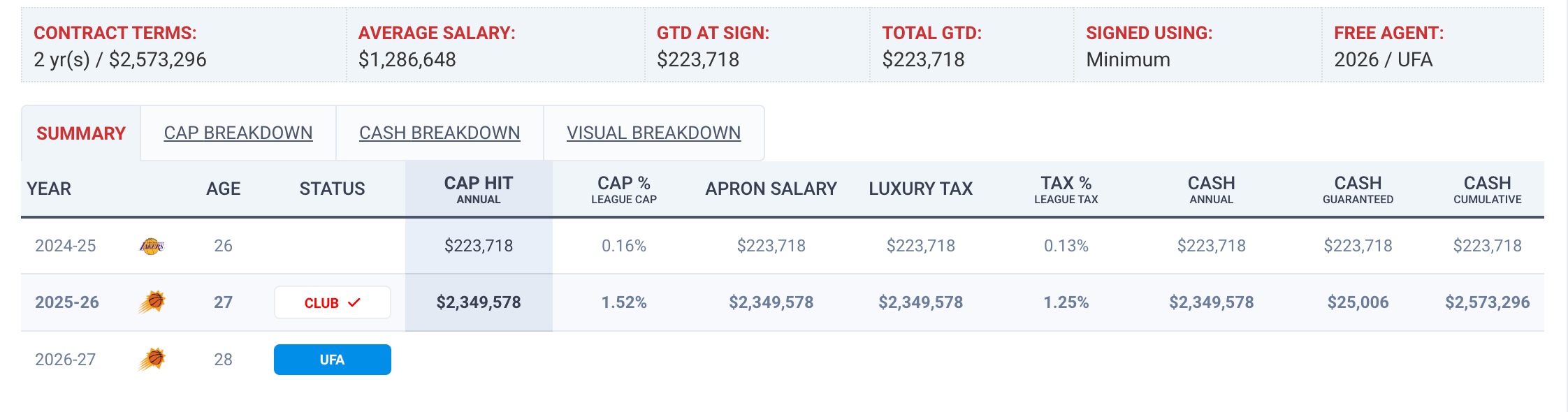 Last season with the Lakers, he produced across the margins again. In 29 games, he averaged 5.6 points, 3.9 rebounds, 1.4 assists, and 1.0 steals in 18.7 minutes, while knocking down nearly one three per game. That is a compact, useful second-unit line that fits what Phoenix needs from him right away.