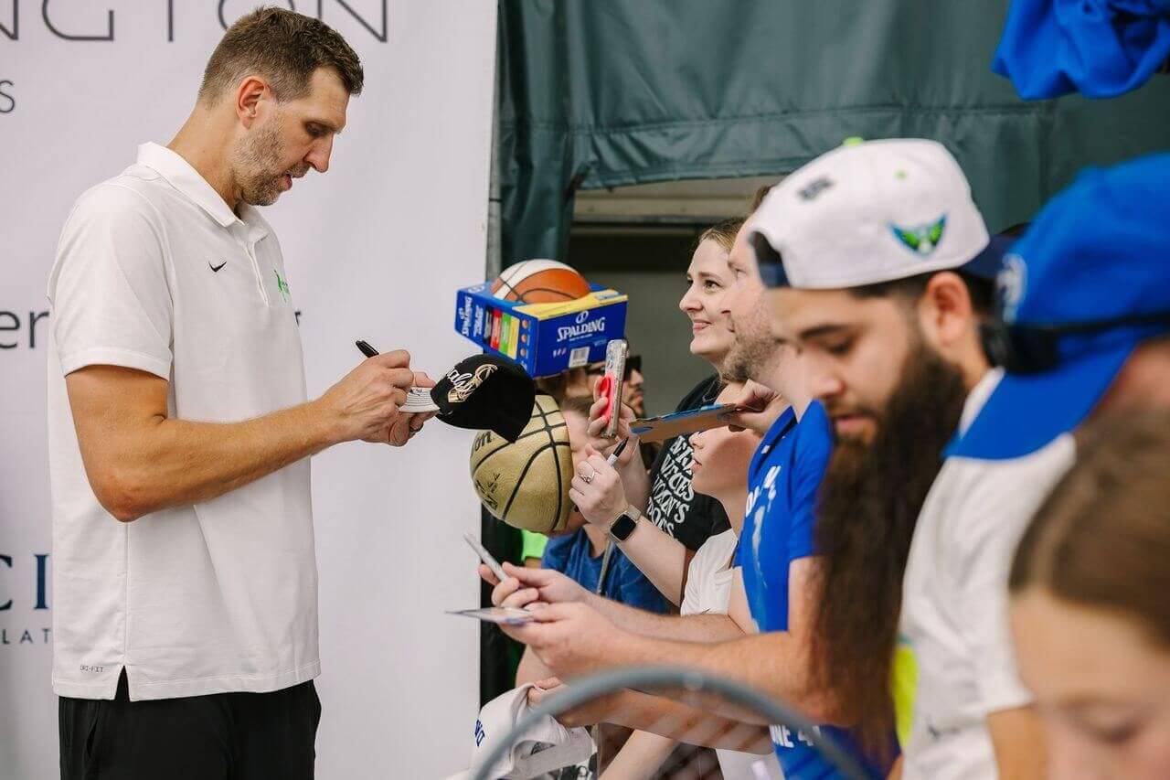 Dirk Nowitzki, here signing autographs at his charity event in Dallas, is ready for his new job as an analyst for Amazon. (Courtesy of Tony Fay PR)