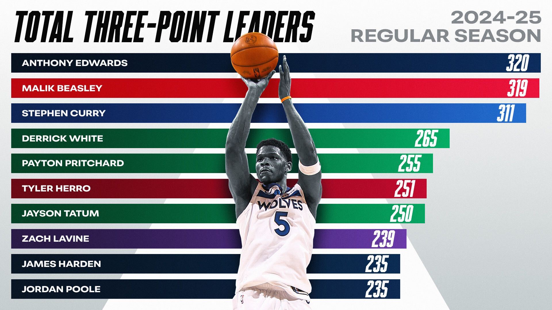 2024-25 was the first time in NBA history that we’ve seen three players make 300+ threes in a season.