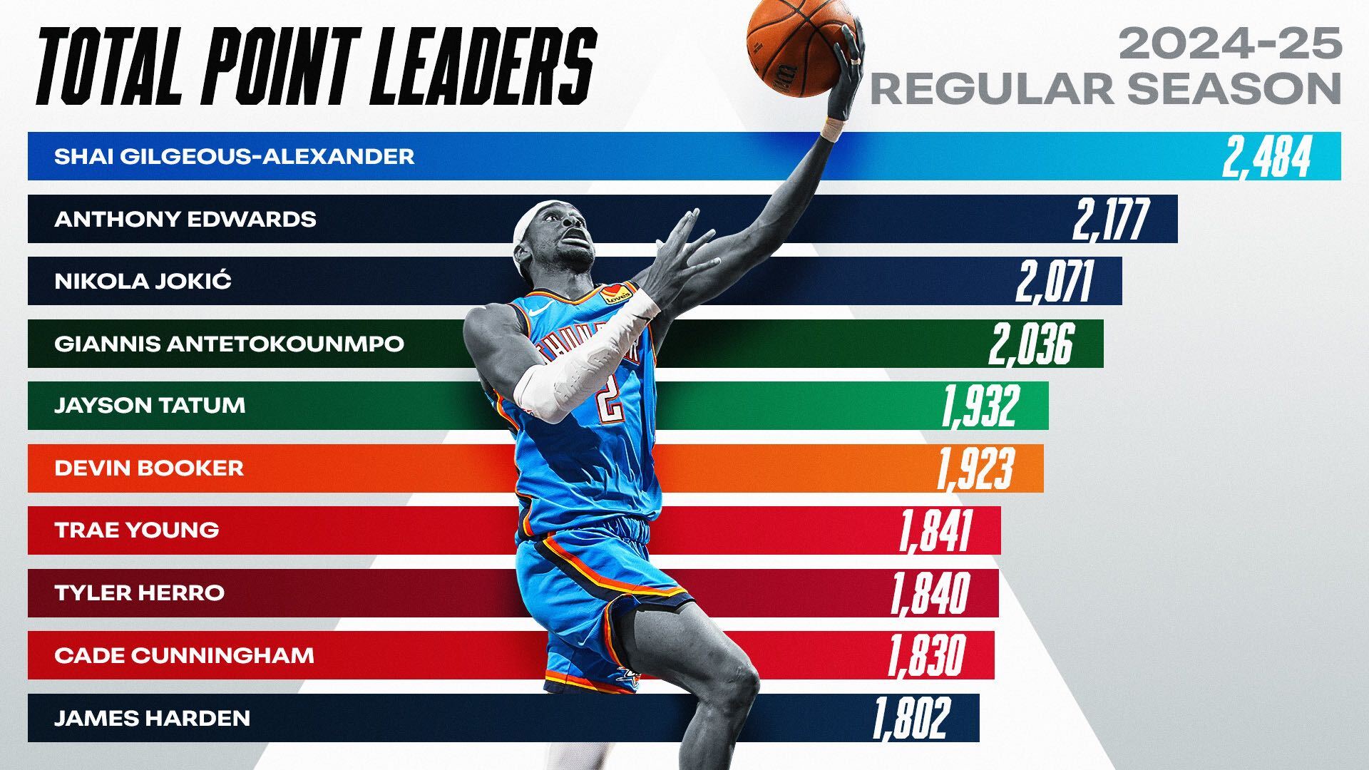 Shai Gilgeous-Alexander’s 2,484 points were the most in a single season since James Harden in 2018-19.