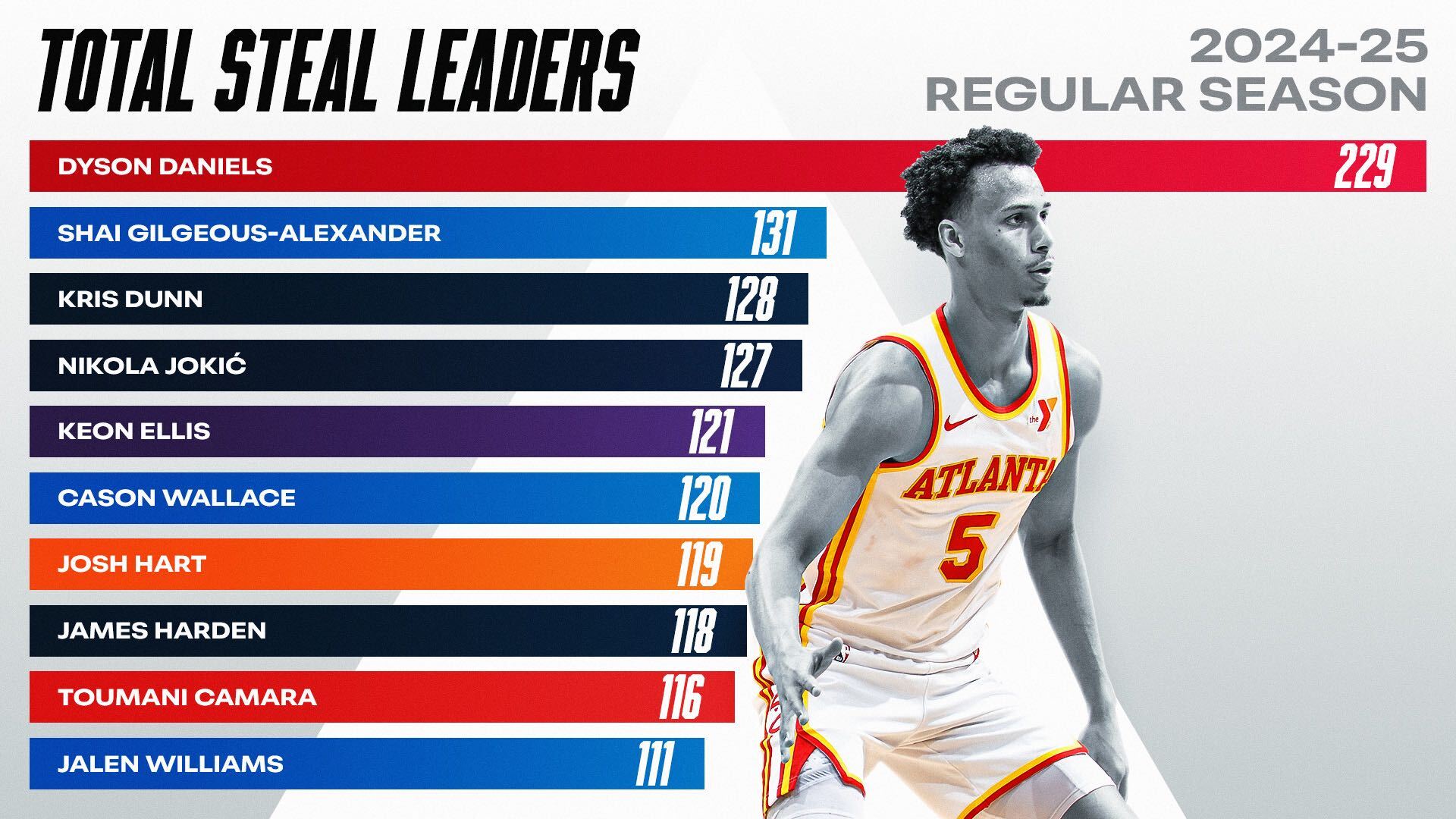 Dyson Daniels’ 229 steals were the most in a season since Gary Payton in 1995-96.
