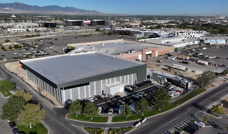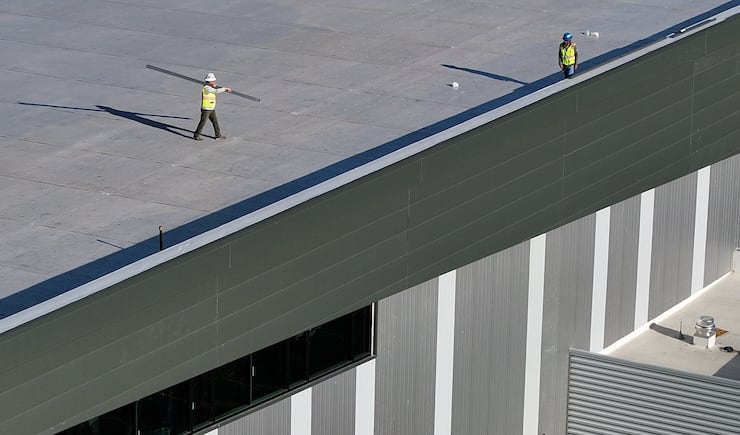 Construction workers work on the roof of the Utah Mammoth training facility in Sandy on Wednesday, Sept. 17, 2025. | Kristin Murphy, Deseret News