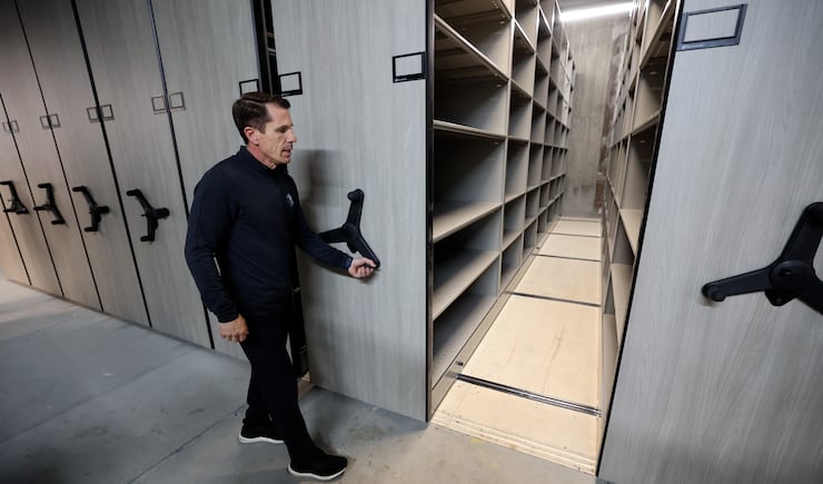 Tony Silva, Utah Mammoth head equipment manager, shows space-saving storage for team equipment during a tour of the Utah Mammoth training facility in Sandy on Wednesday, Sept. 17, 2025. | Kristin Murphy, Deseret News