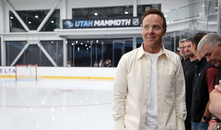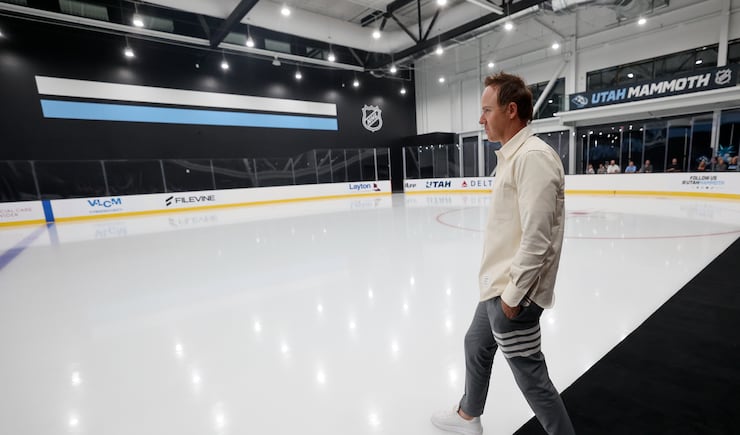 Ryan Smith, owner of the Utah Jazz and Utah Mammoth, steps onto the ice during the unveiling of the Utah Mammoth training facility in Sandy on Wednesday, Sept. 17, 2025. | Kristin Murphy, Deseret News
