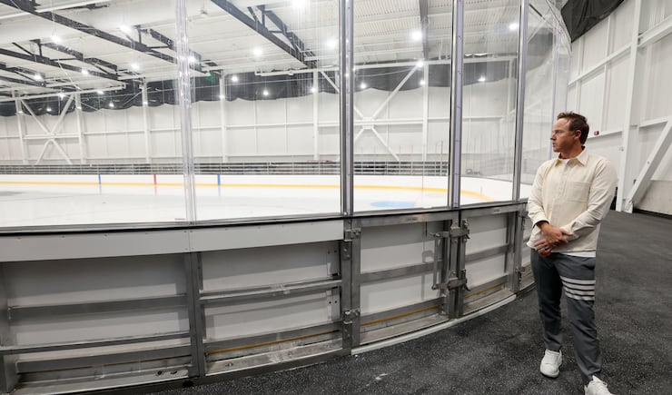 Ryan Smith, owner of the Utah Jazz and Utah Mammoth, looks out at the rink during the unveiling of the Utah Mammoth training facility in Sandy on Wednesday, Sept. 17, 2025. | Kristin Murphy, Deseret News