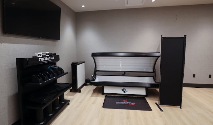 A red light bed and Theragun station are pictured at the new Utah Mammoth training facility in Sandy on Wednesday, Sept. 17, 2025. | Kristin Murphy, Deseret News