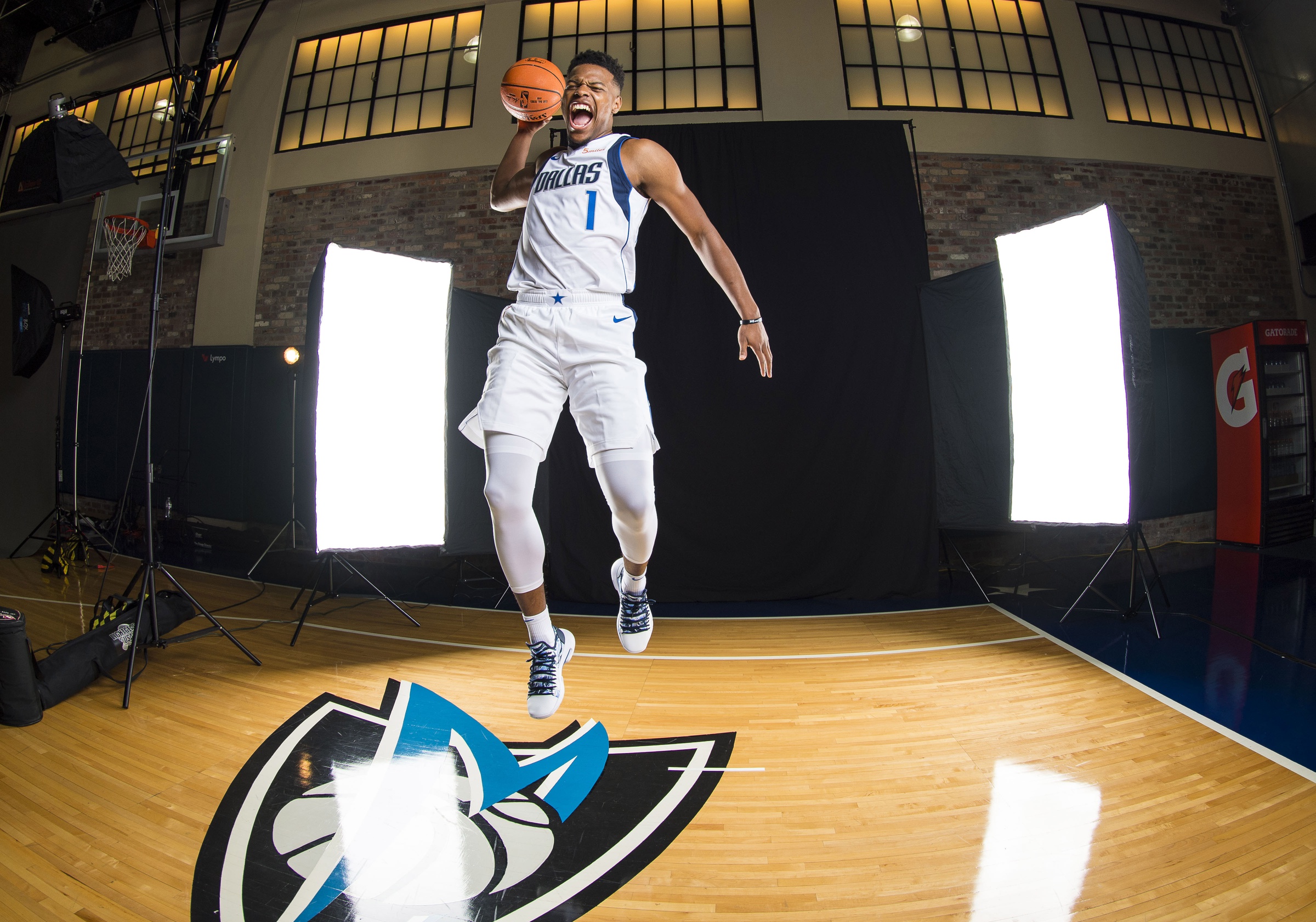 Sep 21, 2018; Dallas, TX, USA; Dallas Mavericks guard Dennis Smith Jr. (1) poses for a photo during the Dallas Mavericks media day at American Airlines Center. Mandatory Credit: Jerome Miron-USA TODAY Sports