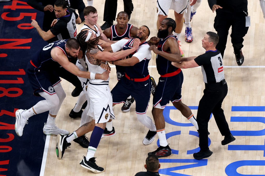 More specifically: Six offsetting technical fouls, three to each team. Gordon, Christian Braun and Nikola Jokic picked up techs for Denver. Harden, Powell and Kris Dunn did for Los Angeles.