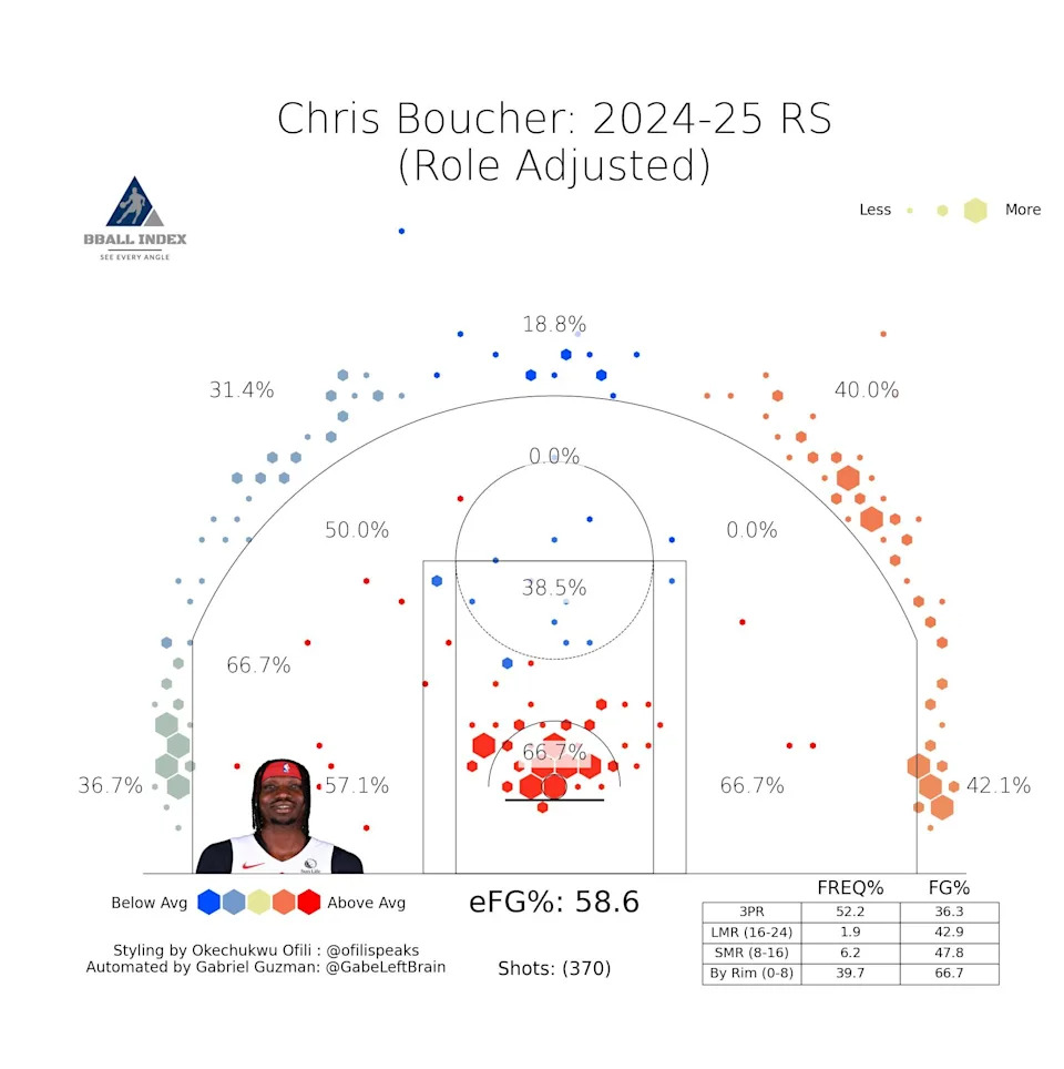 While his shooting might bring back some Porzingis flashbacks, Boucher’s offensive impact might actually be closer to Luke Kornet’s in some areas—especially on the glass.