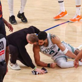 Tatum went scrambling for a loose ball with about three minutes left in the contest, and after planting on his right leg, went down to the floor with a non-contact leg injury. It’s a play that the notoriously durable superstar has been involved in hundreds of times, though something clearly changed this time around, as he writhed on the court in pain before being helped off by a pair of team employees. ESPN’s broadcast then showed him with both hands covering his face while being pushed in a wheelchair to an examination room at Madison Square Garden.