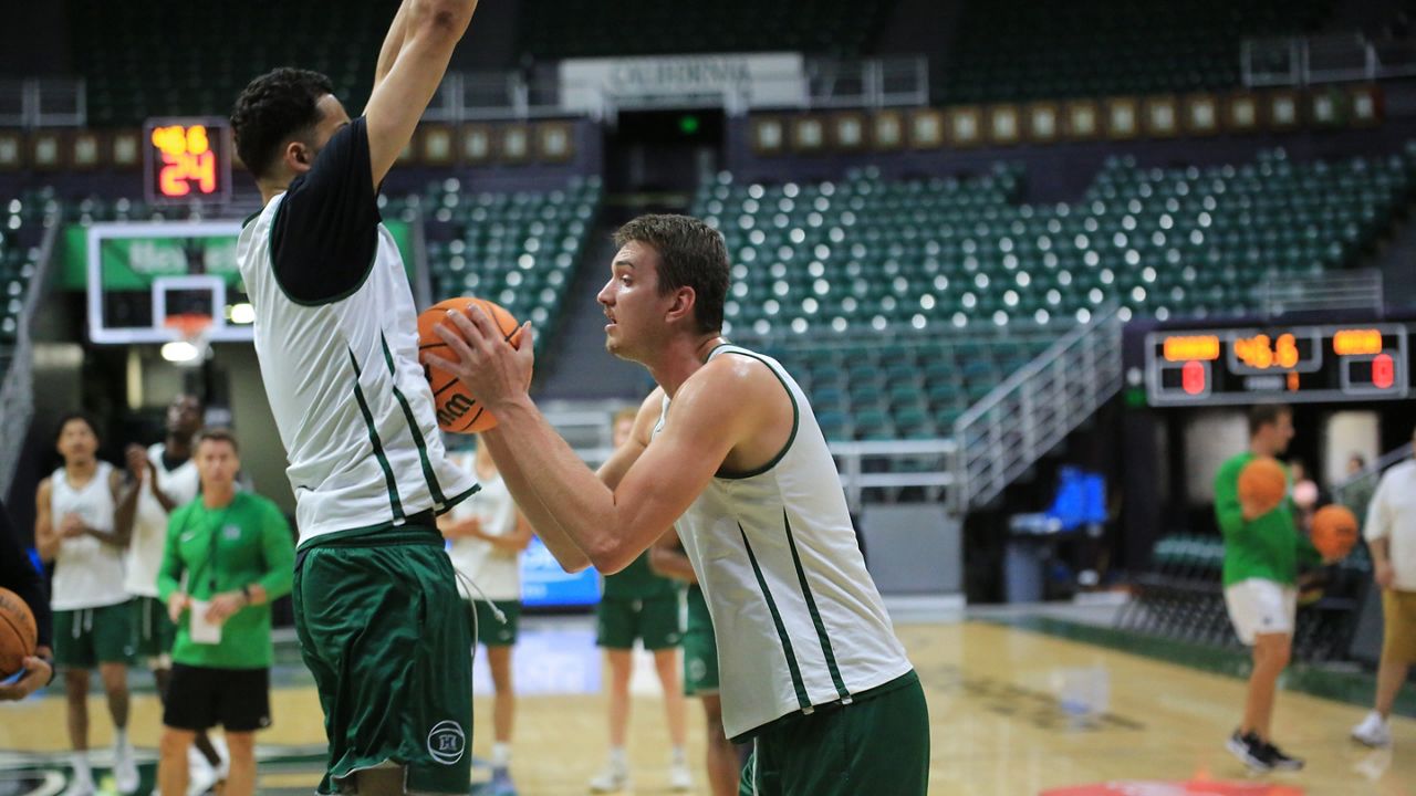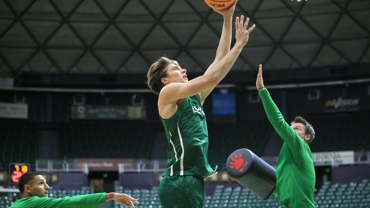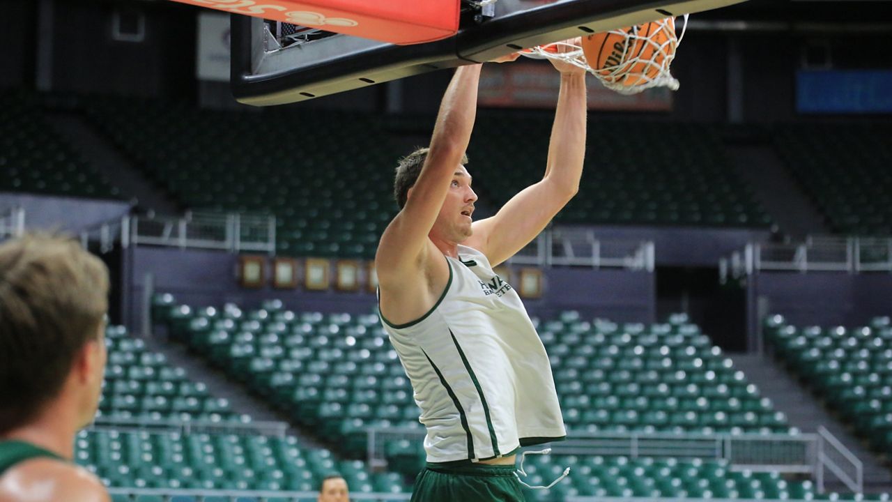 Guard Hunter Erickson went through a halfcourt drill. (Spectrum News/Brian McInnis)