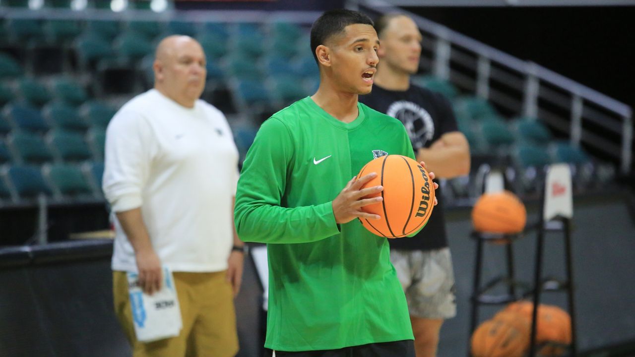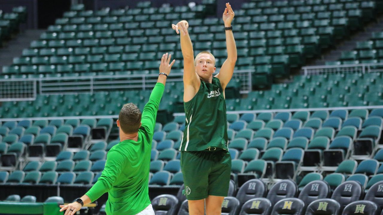 Point guard Aaron Hunkin-Claytor, one of UH’s four returnees, smiled as he worked on free throws. (Spectrum News/Brian McInnis)
