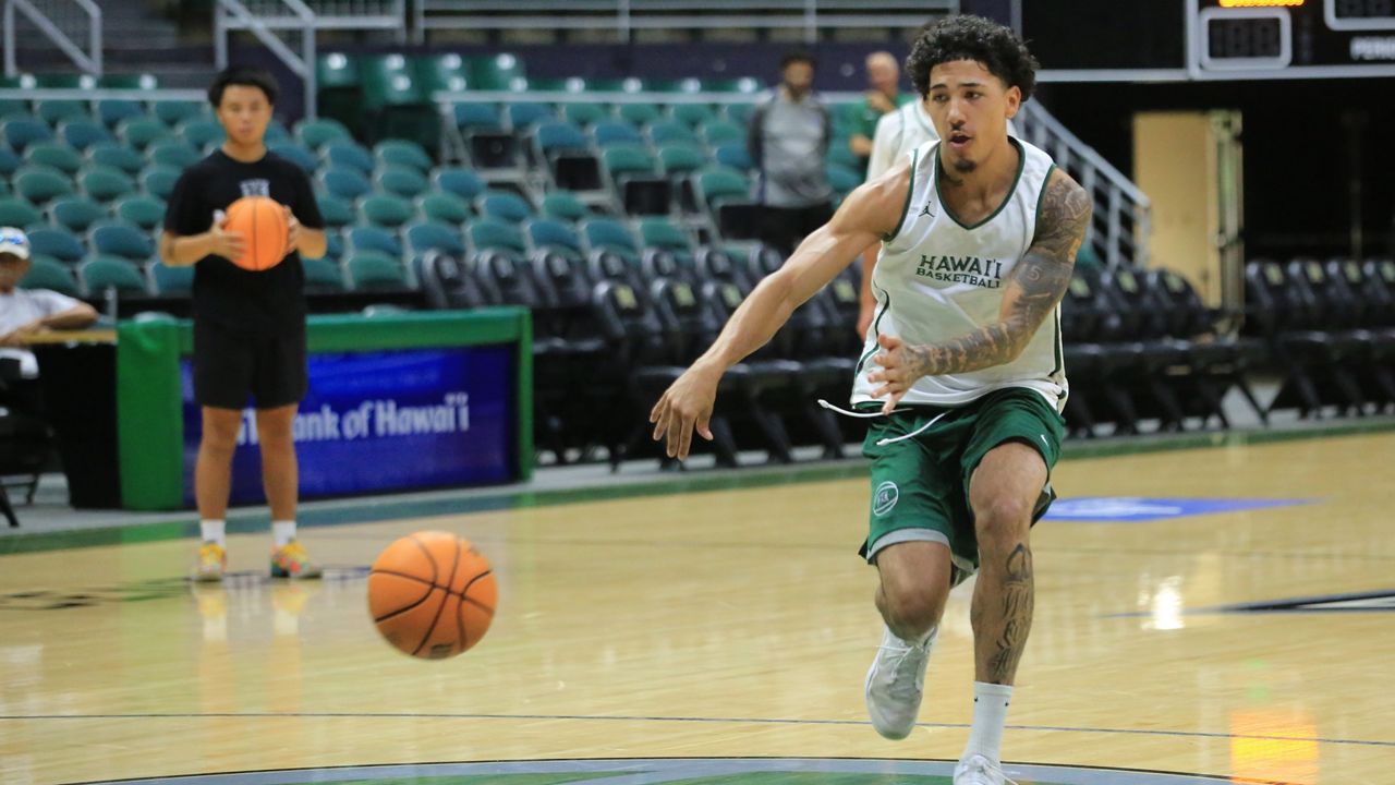 [Note: See below for more photos of the first Hawaii men’s basketball practice of the season.]