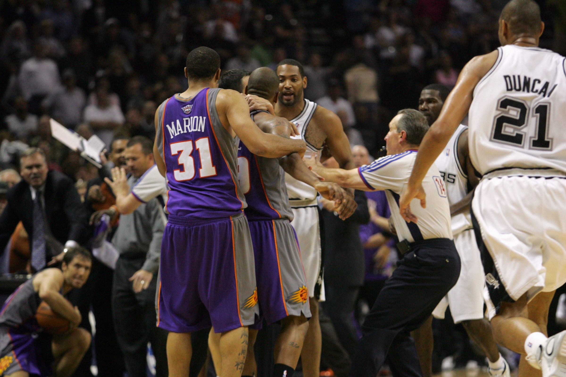 But this triumph on the court turns into a nightmare in the hallways… An altercation at the end of the game triggers a chain of events that will haunt the Suns for years. Amar’e Stoudemire and Boris Diaw hastily leave the bench, an action prohibited by the rules in this context. The league’s verdict comes down: automatic suspension for Game 5. Deprived of their top scorer and their defensive swiss army player, the Suns watch their dream of an NBA title falter…