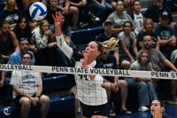 Middle blocker Maggie Mendelson (44) hits the ball during the Penn State women’s volleyball game against Princeton at Rec Hall on Friday, Sept. 13, 2025 in University Park, Pa. The Nittany Lions beat the Tigers 3-2.