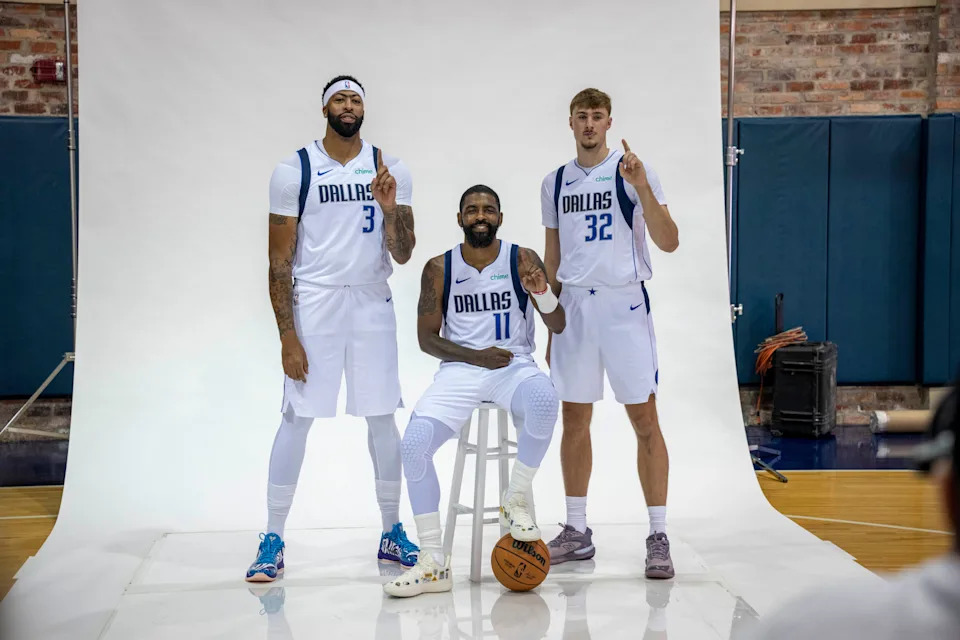 Anthony Davis, Kyrie Irving and forward Cooper Flagg, Dallas Mavericks