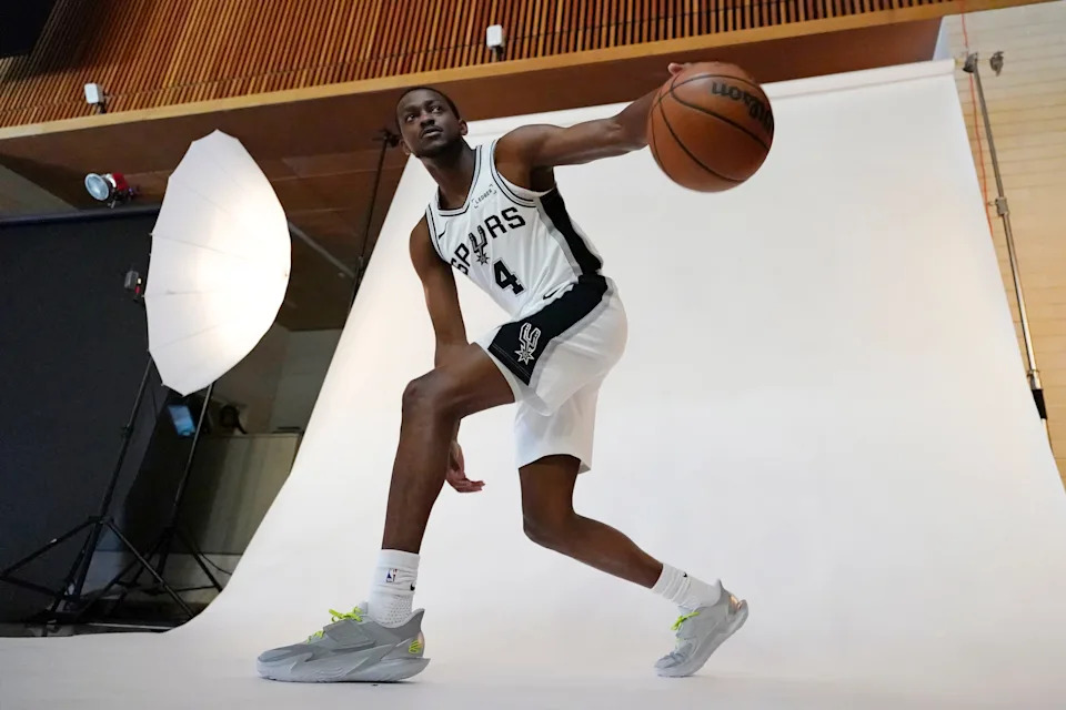 De’Aaron Fox, Victor Wembanyama and Stephon Castle, San Antonio Spurs