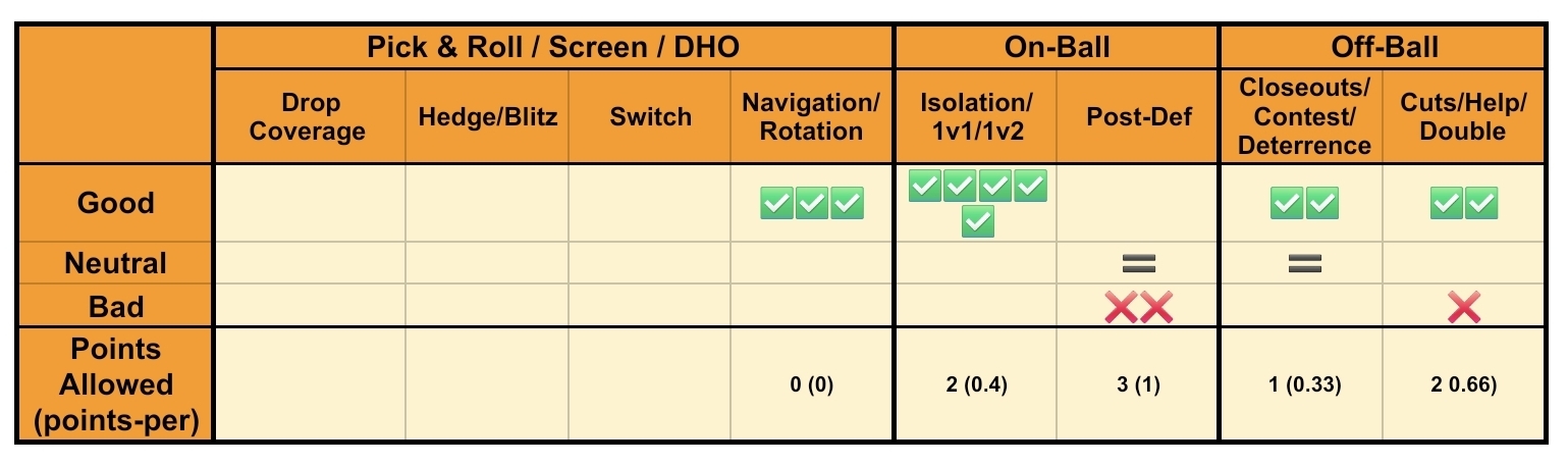 This match perfectly illustrates Crowder’s invisible value. He is not an elite individual stopper, but a defensive catalyst: he communicates, anticipates, fills gaps, and stabilizes the back line. He is the kind of player who turns a good defense into an organized and disciplined one.