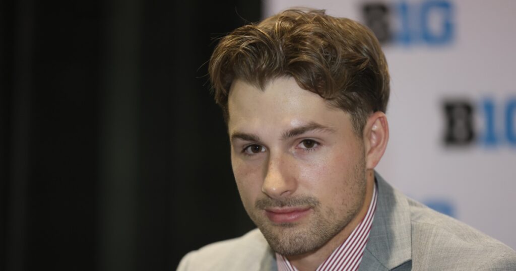 Nebraska’s Sam Hoiberg speaks during Big Ten Men’s Basketball Media Days at the Donald E. Stephens Convention Center. Mandatory Credit: Talia Sprague-Imagn Images