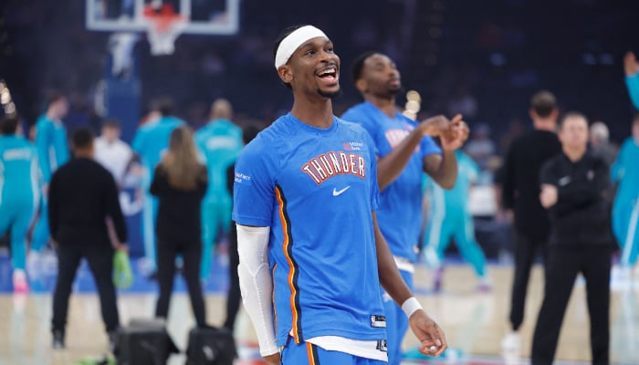 Oklahoma City Thunder guard Shai Gilgeous-Alexander smiles during warm ups before a game between the Charlotte Hornets and the Oklahoma City Thunder at Paycom Center on Oct 9, 2025. — ReutersÂ
