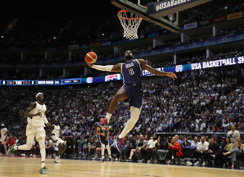 Photos: LeBron James through the years 2024: LeBron James of USA scores a basket during the 2024 USA Basketball Showcase match between USA and South Sudan at The O2 Arena on July 20, 2024 in London, England. (Photo by Henry Browne/Getty Images) (Henry Browne/Getty Images)