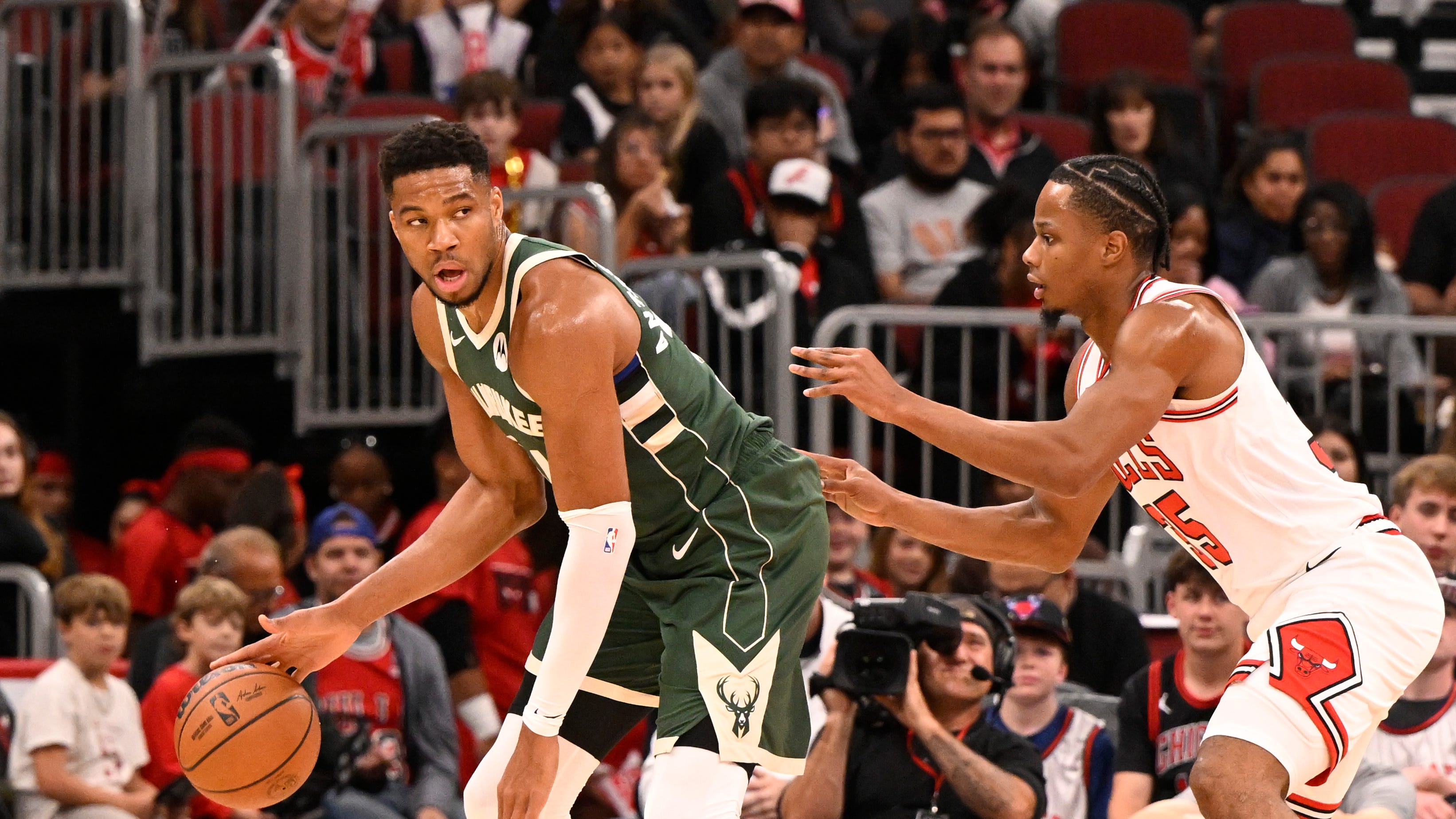 Giannis Antetokounmpo, Doc Rivers and Myles Turner speak on Bucks’ preseason 127-121 win over Bulls on Oct. 12, 2025 at the United Center in Chicago.