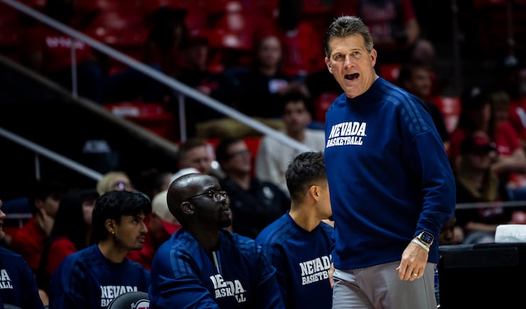 Nevada Wolf Pack head coach Steve Alford coaches during an NCAA men’s basketball exhibition game against the Utah Utes at the Jon M. Huntsman Center in Salt Lake City on Friday, Oct. 17, 2025. | Tess Crowley, Deseret News