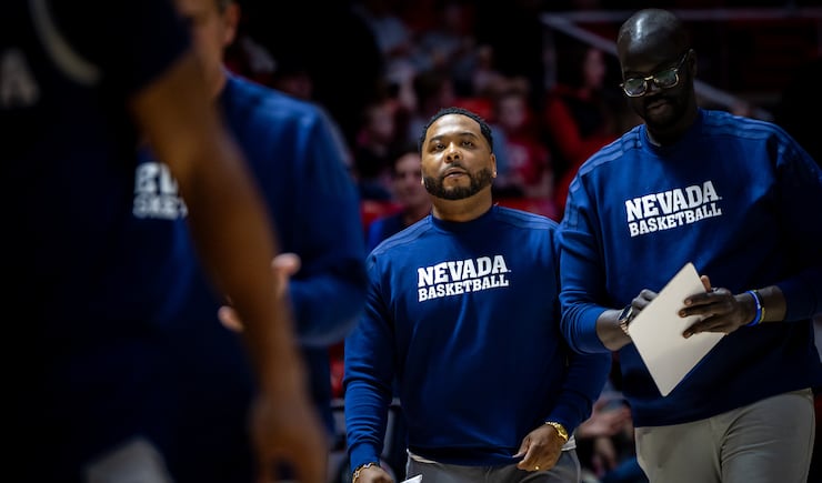 Former Utah Utes assistant coach Lo Leah, center, assistant coaches for the Nevada Wolf Pack during an NCAA men’s basketball exhibition game against the Utah Utes at the Jon M. Huntsman Center in Salt Lake City on Friday, Oct. 17, 2025. | Tess Crowley, Deseret News