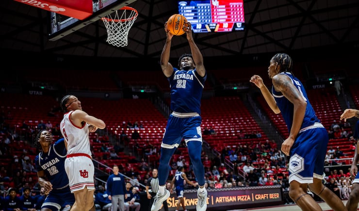 Nevada Wolf Pack center Joel Armotrading (21) gets the rebound during an NCAA men’s basketball exhibition game against the Utah Utes at the Jon M. Huntsman Center in Salt Lake City on Friday, Oct. 17, 2025. | Tess Crowley, Deseret News