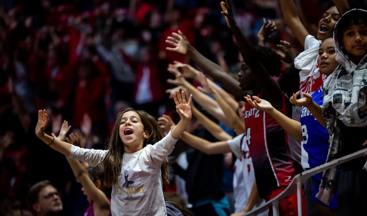 Utah Utes fans cheer during an NCAA men’s basketball exhibition game against the Nevada Wolf Pack at the Jon M. Huntsman Center in Salt Lake City on Friday, Oct. 17, 2025. | Tess Crowley, Deseret News