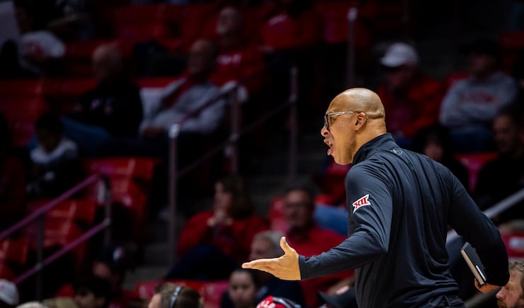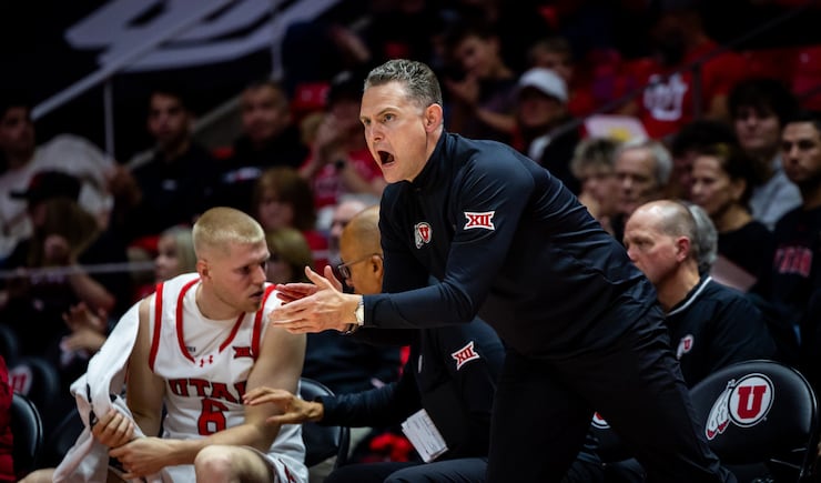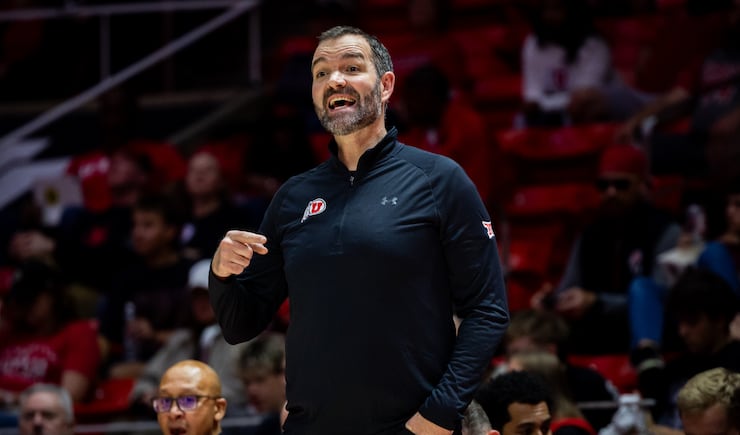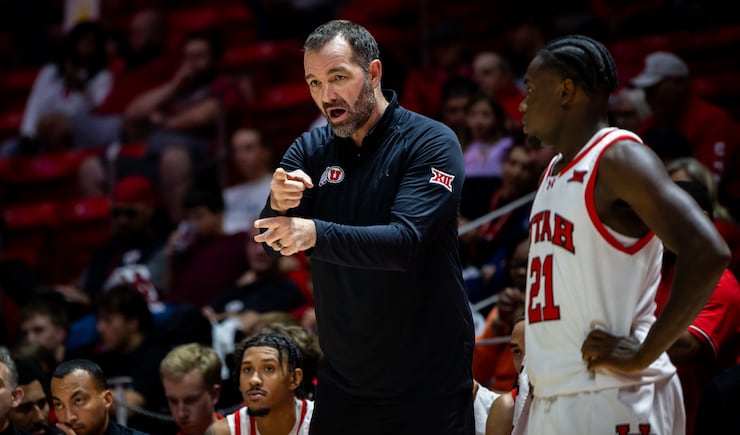 Utah Utes head coach Alex Jensen coaches during an NCAA men’s basketball exhibition game against the Nevada Wolf Pack at the Jon M. Huntsman Center in Salt Lake City on Friday, Oct. 17, 2025. | Tess Crowley, Deseret News