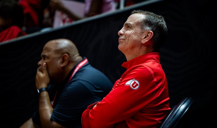 Utah’s athletic director Mark Harlan watches during an NCAA men’s basketball exhibition game against the Nevada Wolf Pack at the Jon M. Huntsman Center in Salt Lake City on Friday, Oct. 17, 2025. | Tess Crowley, Deseret News